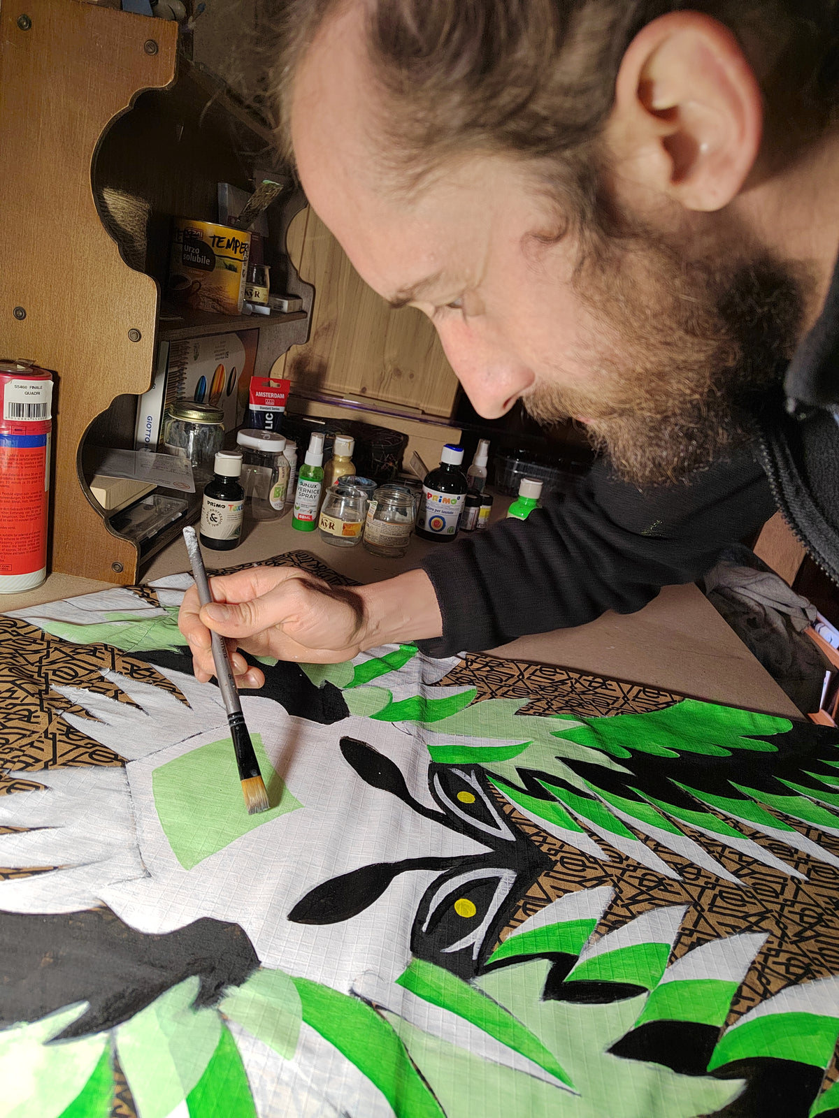 Ho aggiunto le parti colorate in verde, ed infine la parte nera, asciugando con il phon fino a terminare il tutto disegnando sul davanti la scritta FFXVI nel mio stile in modo che la collaborazione fosse completa