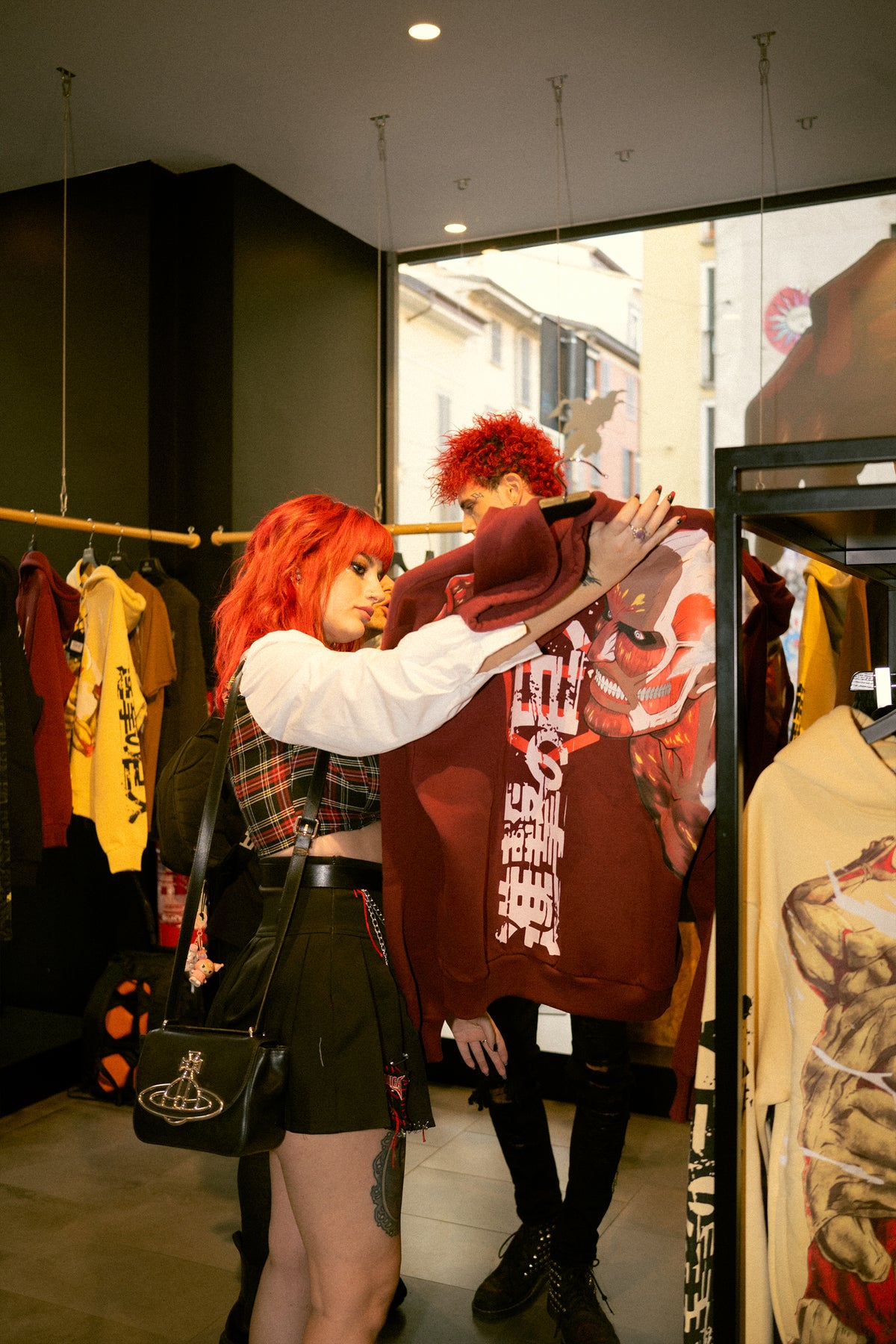 Experience the sense of anguish and vertigo in front of the Colossal Titan's oversized prints, unleash the power of Eren Yeager's Attack Titan with a bold and raw oversized design and celebrate other iconic characters of the series with the exclusive pieces crafted at Dolly Noire headquarters.
